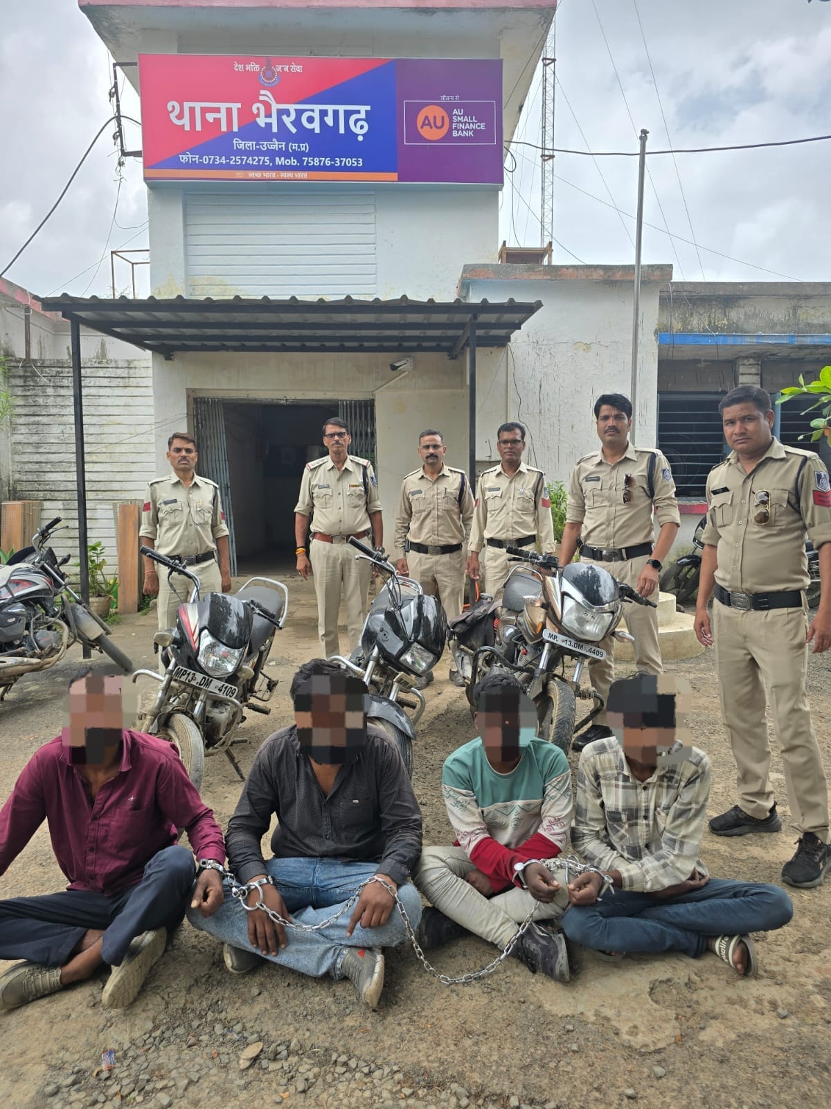 उज्जैन, पुलिस अधीक्षक उज्जैन के निर्देशन में, अतिरिक्त पुलिस अधीक्षक (शहर) श्री नितेश भार्गव एवं नगर पुलिस अधीक्षक श्रीमती पुष्पा प्रजापति के मार्गदर्शन में तथा थाना प्रभारी भैरवगढ़ निरीक्षक आर.एस. शक्तावत के नेतृत्व में भैरवगढ़ पुलिस द्वारा बड़ी कार्यवाही करते हुए तीन स्थानों पर दबिश देकर एक सक्रिय आपराधिक गैंग का भंडाफोड़ किया गया है, जो अवैध जहरीली शराब का परिवहन करने के साथ-साथ तार चोरी एवं मोटरसायकिल चोरी की वारदातों में संलिप्त था।