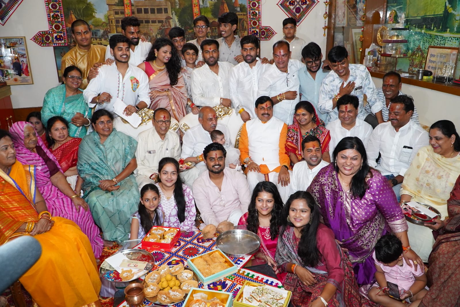उज्जैन,मुख्यमंत्री डॉ. मोहन यादव के उज्जैन स्थित निज निवास पर शनिवार को रक्षाबंधन पर्व हर्षोंल्लास के साथ मनाया गया । मुख्यमंत्री डॉ. यादव ने उनकी बहनों से राखी बंधवाई और आशीर्वाद लिया। इस दौरान उनके भाई श्री नंदलाल यादव, श्री नारायण यादव , बहनें श्रीमती शांति यादव , श्रीमती कलावती यादव, धर्मपत्नी श्रीमती सीमा यादव ,सुपुत्र एवं सुपुत्री तथा परिवार के सभी सदस्य मौजूद थे। मुख्यमंत्री डॉ. यादव ने इस अवसर पर परिवार की सभी बहनेां और बेटियों को भेंट भी दी ।