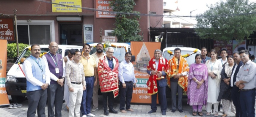 आई.डी.बी.आई. बैंक के वरिष्ठ अधिकारियों एम.डी. श्री राकेश शर्मा, सी.जी.एम. श्री रंजीत कुमार सोनी, आर.एच. श्री सचिन रागपाल, ए.जी.एम. सुश्री शिल्पा आठवले, श्री तरूण मेहता व उज्जैन मोहन नगर शाखा प्रबंधक श्री विक्रमसिंह केमा द्वारा विधिवत पूजन कर 03 वाहन श्री महाकालेश्वर मंदिर प्रबंध समिति की उप प्रशासक एवं डिप्टी कलेक्टर श्रीमती सिम्मी यादव को सौपे गये।