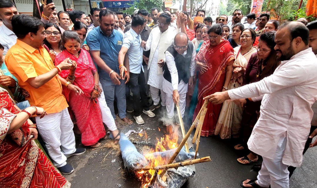 मीडिया प्रभारी दिनेश जाटवा के अनुसार पुतला दहन कार्यक्रम को संबोधित करते हुए निगम सभापति श्रीमती कलावती यादव ने कहा कि लाड़ली बहनों एवं मातृशक्ति का भाजपा के प्रति बढ़ते विश्वास से कांग्रेस बौखला गई है। आए दिन कांग्रेस के नेता विवादित बयान देते हैं। कांग्रेस की मानसिकता महिला विरोधी रही है, जबकि भाजपा सरकार महिलाओं का सम्मान करती है। उन्होंने कहा कि जीतू पटवारी का यह बयान कि “महिलाएं सबसे ज्यादा शराब अगर कहीं पीती हैं तो वह मध्य प्रदेश में पीती हैं” — न केवल असत्य है बल्कि महिलाओं का घोर अपमान भी है। भारत में महिलाएं देवी स्वरूपा मानी जाती हैं और इस प्रकार की टिप्पणी अत्यंत निंदनीय है। उन्होंने कहा कि हरतालिका तीज के पावन पर्व पर जब हमारी लाखों माताएं – बहने निर्जला व्रत रख कर अपने पति, परिवार और देश के लिये पूजा – उपासना कर रही हों तो आप उसी दिन बहनों का ऐसा अपमान करो। प्रदेश की करोड़ो सनातनी जनता , भाजपा सरकार और लाखों कार्यकर्ता इसे बर्दाश्त नहीं करेगें। मेरी कांग्रेस के राष्ट्रीय नेतृत्व और प्रदेश अध्यक्ष से मांग है कि वह अविलंब प्रदेश की महिलाओं से माफी मांगें। केन्द्रीय नेतृत्व ऐसे वाचाल मध्यप्रदेश अध्यक्ष को जो हमारी बहनों को अपमानित करने की मंशा से बयान दे रहा हो , उसे पद से हटाना चाहिए।