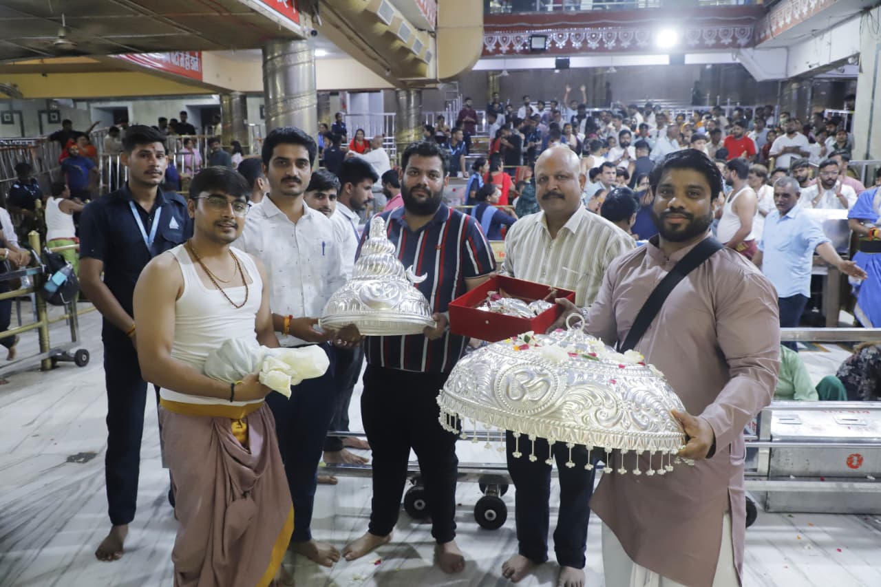 उज्जैन, श्री महाकालेश्वर मंदिर में तुषार प्रदीप गुरु की प्रेरणा से श्री विपुल गुप्ता व श्री सुशान्त भल्ला द्वारा श्री महाकालेश्रर भगवान को 01मुकुट, 01 छत्र, 01 नग मुण्डमाला, 01 नग त्रिपुंड, 02 नग नागकुण्डल 03 नग नेत्र , 01 नग रजत का ॐ व 01 नग रुद्राक्ष माला रजत में मढ़ी हुई (वजन 527.600) भेट किये गए। बाकी रजत सामग्री का कुल वजन 9682.00 ग्राम है।