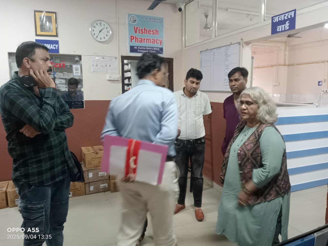 उज्जैन, मुख्य चिकित्सा एवं स्वास्थ्य अधिकारी डॉ.अशोक कुमार पटेल के निर्देशन में गठित दल के सदस्यों जिला स्वास्थ्य एवं महामारी नियंत्रण अधिकारी डॉ. सुनीता परमार ,उप जिला विस्तार एवं माध्यम अधिकारी श्री चरण सिंह मण्डलोई, आर्टिस्ट कम फोटो ग्राफर श्री राजेन्द्र कुमार वाडिया द्वारा गुरुवार 04 सितंबर को शहर के निजी चिकित्सालय विशेष हॉस्पिटल में दोपहर 2:00 बजे औचक निरीक्षण किया गया। विशेष हॉस्पिटल में गर्भवती महिलाओं के ए.एन.सी. पंजीयन व डिलेवरी अपडेशन नहीं करने के कारण हॉस्पिटल के पंजीयन को 15 दिन के लिये निलंबित किया गया है। 15 दिवस निलंबन अवधि के दौरान हॉस्पिटल का संचालन करते पाये जाने पर हॉस्पिटल को सील किये जाने की भी चेतावनी दी गई।
