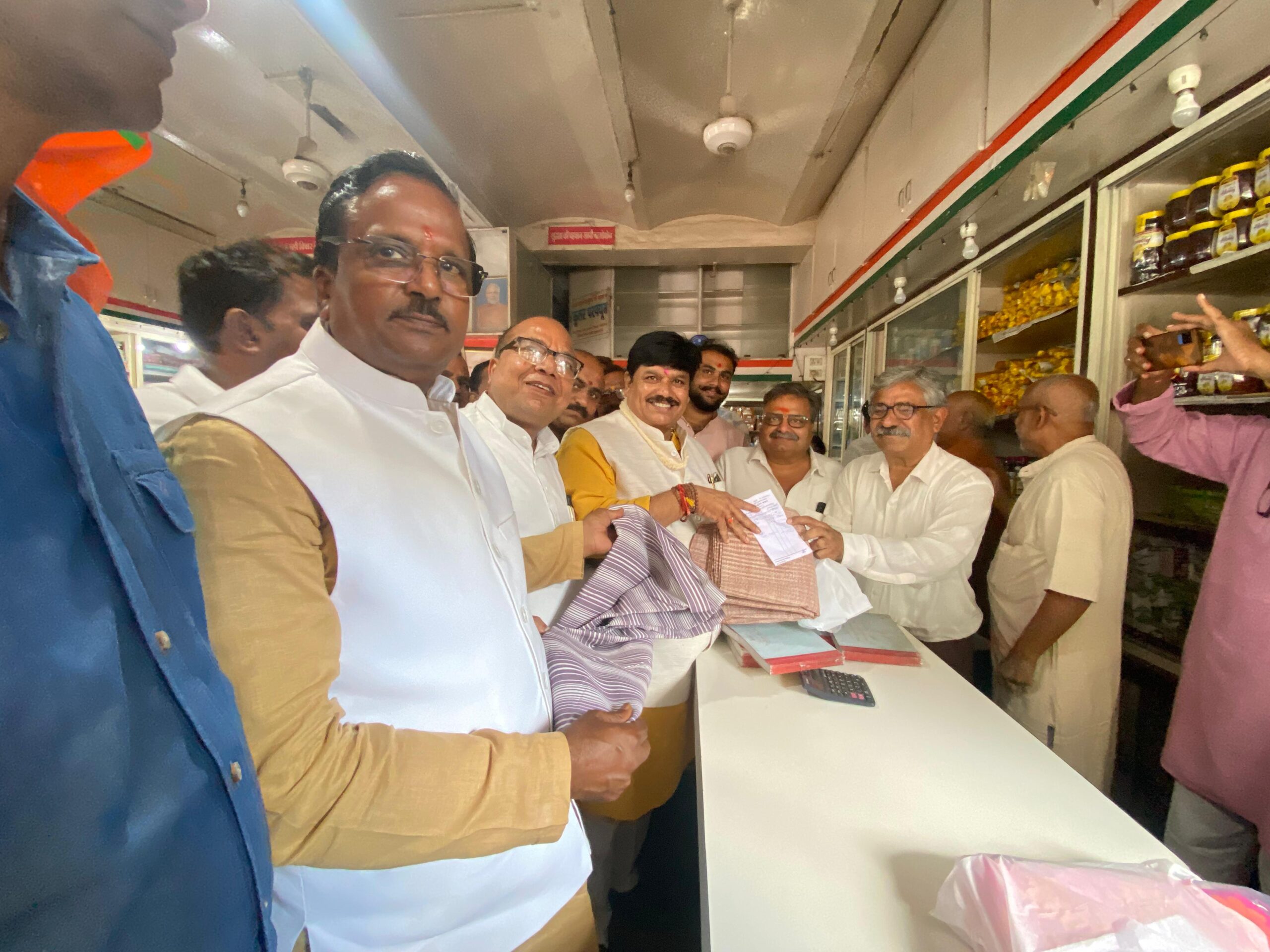 भाजपा मीडिया प्रभारी दिनेश जाटवा के अनुसार सेवा पखवाड़ा अभियान के तहत गांधी जयंती के अवसर पर भाजपा द्वारा नगर अध्यक्ष श्री संजय अग्रवाल के नेतृत्व में कार्यकर्ताओं द्वारा खादी की खरीदी की गई । इस अवसर पर नगर अध्यक्ष ने महात्मा गांधी, लाल बहादुर शास्त्री के जीवन पर प्रकाश डाला उन्होंने बताया कि देश के प्रधानमंत्री नरेंद्र मोदी ने गांधी जी के सपनों को किस तरह साकार किया, स्वच्छता गांधी जी बेहद प्रिय थी। मोदी जी ने सम्पूर्ण भारत में स्वच्छ भारत मिशन योजना लागू कर स्वच्छता अभियान चलाया एवम देश में स्वच्छता की अलख जगाई साथ ही शौचालय बनवाकर खुले में शौच से मुक्ति दिलाई। इस अवसर पर सांसद श्री अनिल फिरोजिया, विधायक श्री अनिल जैन कालूहेड़ा, महापौर श्री मुकेश टटवाल, निगम सभापति श्रीमती कलावती यादव, विवेक जोशी, ओम जैन, महामंत्री श्री आनन्दसिंह खींची, कमल बैरवा, पवन विश्वकर्मा, विजय दीक्षित, अशोक कैथवास, अजय तिवारी, विजय चौहान, विक्रम ठाकुर, मुकेश पोरवाल सहित कार्यकर्ता पदाधिकारी उपस्थित थे!
