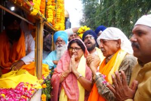 उज्जैन,गुरु ग्रंथ साहिब कीर्तन की सवारी आसम के गुरुद्वारा से प्रारंभ होकर महाराष्ट्र,उत्तर प्रदेश, मध्य प्रदेश राजस्थान होते हुए पंजाब प्रांत पर समापन होगी इस अवसर पर गुरु गुरु ग्रंथ साहिब सवारी में शस्त्रों के लिए प्रदर्शित वाहन में तेग़ बहादुर हिंद के शस्त्र को चलित वाहन में सजाया गया इस अवसर पर वरिष्ठ समाजसेवी श्री नारायण यादव, नगर अध्यक्ष श्री संजय अग्रवाल, महामंत्री श्री कमलेश बैरवा, श्री आनंद सिंह खींची, पार्षद श्रीमती नीलम राजा कालरा, समाज के अनु अरोड़ा, श्री सुरेंद्र सिंह टुटेजा, श्री इकबाल सिंह गांधी, श्री चरण सिंह कालरा, श्री चरण सिंह गिल, श्री बंटी मोंगा आदि उपस्थिति रहे।
