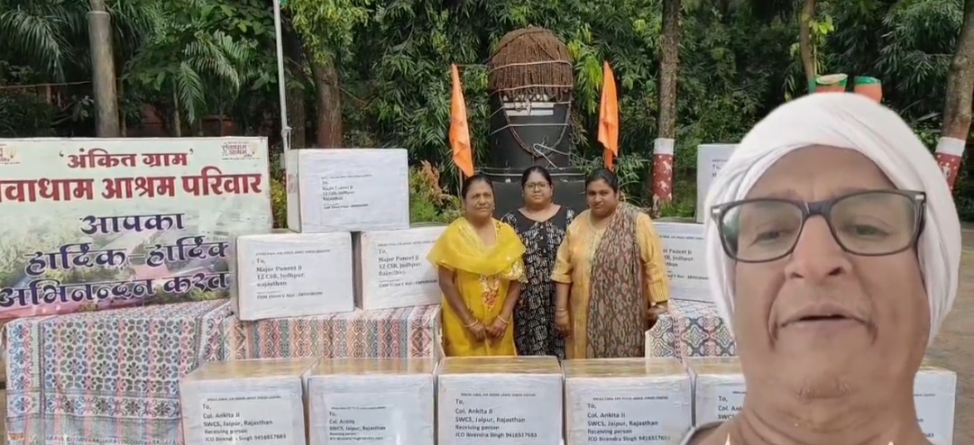 उज्जैन,महाकाल की नगरी उज्जयिनी में स्थित अंकितग्राम, सेवाधाम आश्रम उज्जैन ने अनामप्रेम प्रेरित होकर अपने खर्च में से कटोत्री कर देश के वीर जवानों हेतु जो केवल हमारे सुख के लिए राष्ट्र के लिए अपना सुख त्याग कर रहे है और दृढ़ता के साथ अपना फर्ज निभा रहे है। उनके लिए राजस्थान की सीमाओं पर तैनात 1008 वीर जवानों को दिपावली पर्व पर शुद्धता से निर्मित मिठाईयां भेजी। आश्रम संस्थापक सुधीर भाई गोयल ने बताया कि आश्रम ने दीपावली पर्व पर खर्च में से देश के वीर जवानों के लिए आश्रम परिसर स्थित महावीर भोजनशाला में शुद्ध घी एवं सनफ्लावर तेल से निर्मित मिठाईयों बनवाकर जयपुर एवं जोधपुर दीपावली पर्व के एक दिन पूर्व आश्रम के स्वयं सेवको के हाथों भिजवाई। श्रीमती कांता भाभी, मोनिका दीदी, गोरी दीदी के नेतृत्व में आश्रम की विशेष बालिकाओं ने समस्त पैकेट्स बनाकर अपने बड़े भाईयों को दीपावली पर्व पर अनुपम उपहार दिया।