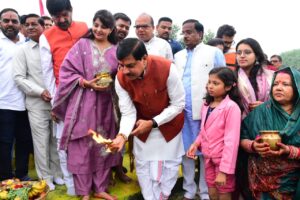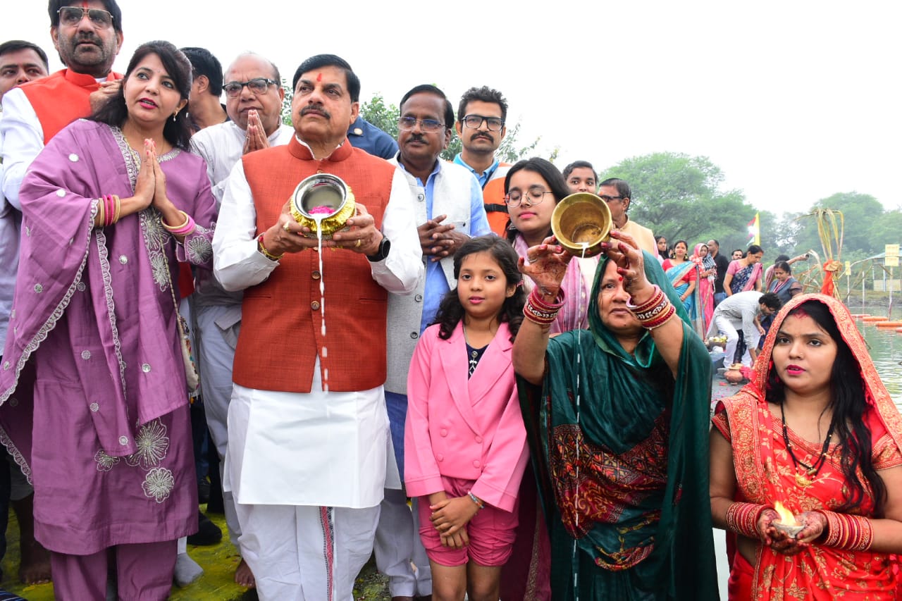उज्जैन,आस्था,पवित्रता व सूर्य उपासना का महापर्व छठ पूजा पर मंगलवार को मध्य प्रदेश शासन के मुख्यमंत्री डॉ मोहन यादव जी द्वारा विक्रम सरोवर पर पूजा करते हुए उगते सूरज को अर्घ्य दिया गया, नगर निगम उज्जैन द्वारा विक्रम सरोवर पर छठ पूजा को ध्यान में रखते हुए विशेष रूप से व्यवस्था की गई पूजा करने हेतु आने वाले श्रद्धालु उक्त व्यवस्था से खुश नजर आए!