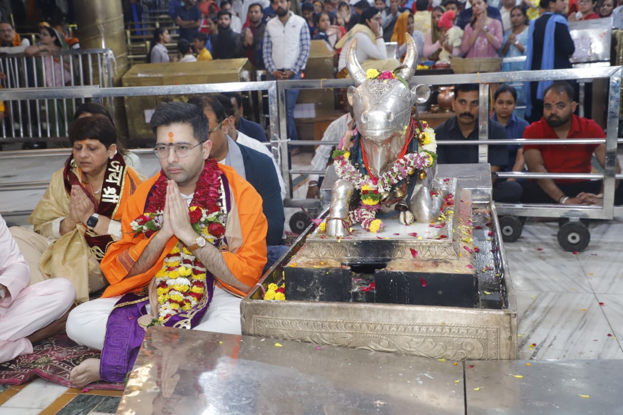उज्जैन, राज्यसभा सांसद श्री राघव चड्ढा ने आज पवित्र श्री महाकालेश्वर मंदिर में भगवान श्री महाकालेश्वर जी के दर्शन कर देश-प्रदेश की खुशहाली की कामना की।