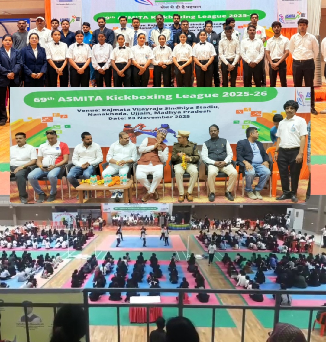 उज्जैन, मध्य प्रदेश। खेल और एथलेटिक भावना को बढ़ावा देते हुए, ‘खेलो इंडिया अस्मिता किकबॉक्सिंग सिटी लीग’ का सफल आयोजन उज्जैन के राजमाता विजय राजे सिंधिया बहुउद्देशीय खेल परिसर, नानाखेड़ा में किया गया। इस भव्य प्रतियोगिता में मध्य प्रदेश के विभिन्न जिलों की 480 बालिकाओं ने अपनी किकबॉक्सिंग प्रतिभा का प्रदर्शन किया।इस प्रतियोगिता का सफल आयोजन विशाल सिंह सोलंकी ने किया, जिसमें गौरव रोकड़े (आयोजक अध्यक्ष) और रवि यादव तथा जमीर अब्बास ने संयोजक के रूप में महत्वपूर्ण भूमिका निभाई।