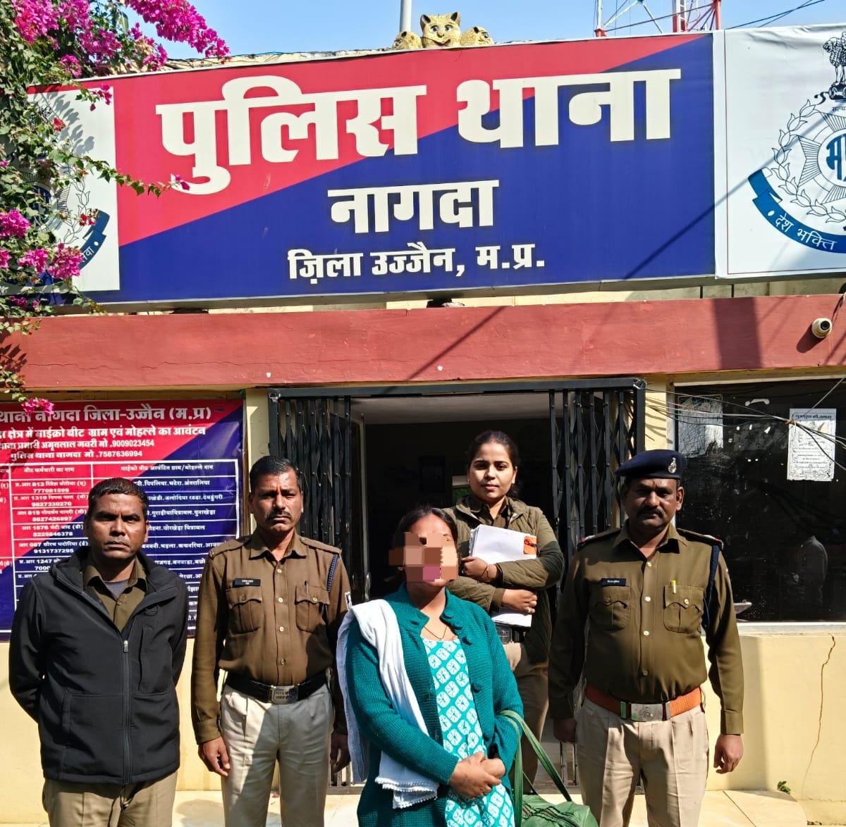 पुलिस को सूचना प्राप्त हुई कि उक्त आरोपिया केंद्रीय जेल भोपाल में अन्य प्रकरण में निरुद्ध है। सूचना सत्यापित होने पर न्यायालय नागदा द्वारा प्रोडक्शन वारंट जारी किया गया। दिनांक 28.11.2025 को थाना नागदा पुलिस टीम द्वारा आरोपिया को न्यायालय में पेश कर विधि-संगत गिरफ्तारी की कार्रवाई की गई व न्यायालय द्वारा 01 दिवस का पुलिस रिमांड स्वीकृत किया गया।