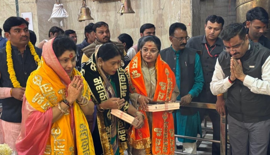 उज्जैन, राज्य मंत्री-स्वतंत्र प्रभार म.प्र. शासन श्रीमती कृष्णा गौड़, राज्य मंत्री-नगरीय विकास एवं आवास म.प्र. शासन श्रीमती प्रतिमा बागरी एवं राज्य मंत्री- पंचायत एवं ग्रामीण विकास विभाग म.प्र. शासन श्रीमती राधा रविन्द्र सिंह ने विश्व प्रसिद्ध श्री महाकालेश्वर मंदिर पहुंचकर भगवान श्री महाकाल जी के दर्शन किए।