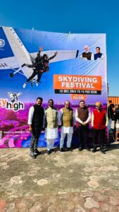उज्जैन, म.प्र. स्काई-डाइविंग फेस्टिवल (पांचवें संस्करण) उज्जैन का शुभारंभ शुक्रवार प्रातः 11 बजे हर्षोल्लास से किया गया।शुभारंभ अवसर पर विधायक श्री अनिल जैन कालूहेड़ा,अपर प्रबंध संचालक मध्य प्रदेश पर्यटन बोर्ड श्री अभय अरविंद बेडेकर, एडीएम श्री अत्येंद्र सिंह गुर्जर,सयुक्त संचालक (एडवेंचर) मध्य प्रदेश टूरिज्म बोर्ड डॉ संतोष कुमार श्रीवास्तव,श्री संजय अग्रवाल आदि जनप्रतिनिधि एवं अधिकारी उपस्थित रहे।