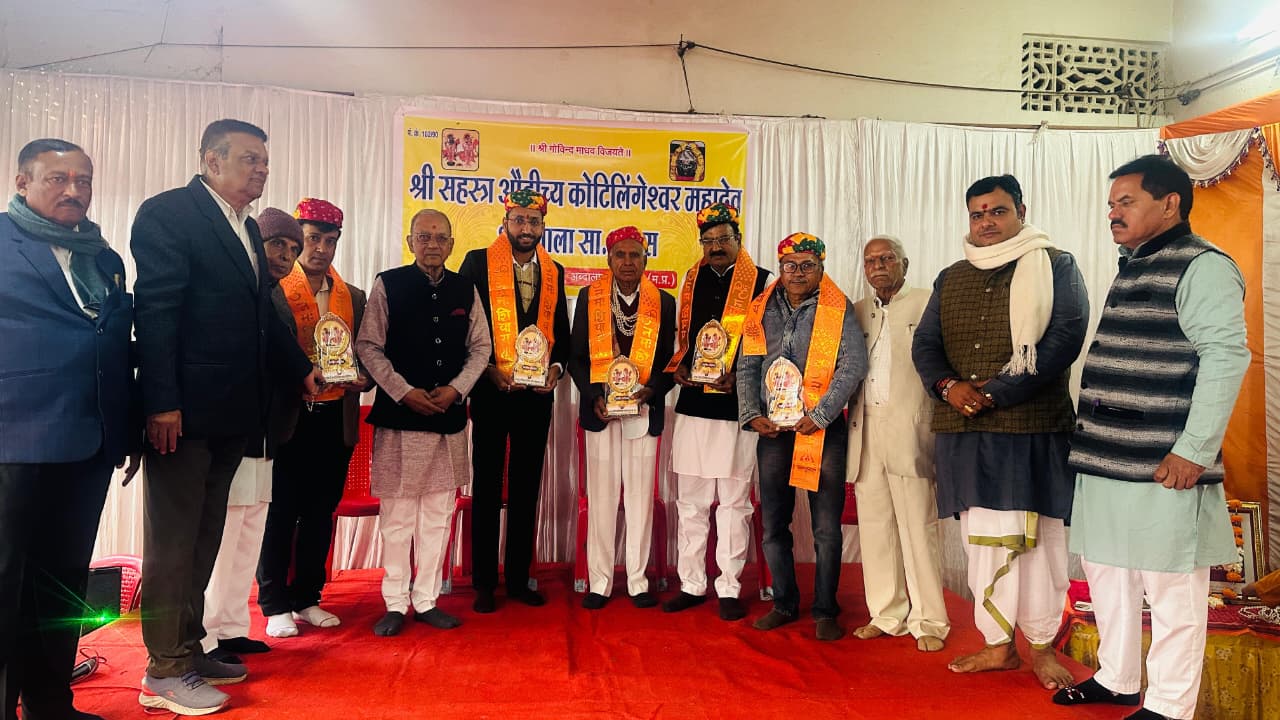 उज्जैन,श्री सहस्त्र औदीच्य कोटिलिंगेश्वर महादेव धर्मशाला सार्वजनिक न्यास, उज्जैन द्वारा अखिल भारतीय औदीच्य महासभा के नवनिर्वाचित पदाधिकारियों के सम्मान में भव्य स्वागत समारोह आयोजित किया गया। समारोह में महासभा के नवनिर्वाचित राष्ट्रीय अध्यक्ष श्री सत्यनारायण त्रिवेदी पटेल, राष्ट्रीय महामंत्री श्री रवि ठक्कर तथा युवा इकाई के राष्ट्रीय अध्यक्ष चेतन अवस्थी का गरिमामय स्वागत एवं सम्मान किया गया।