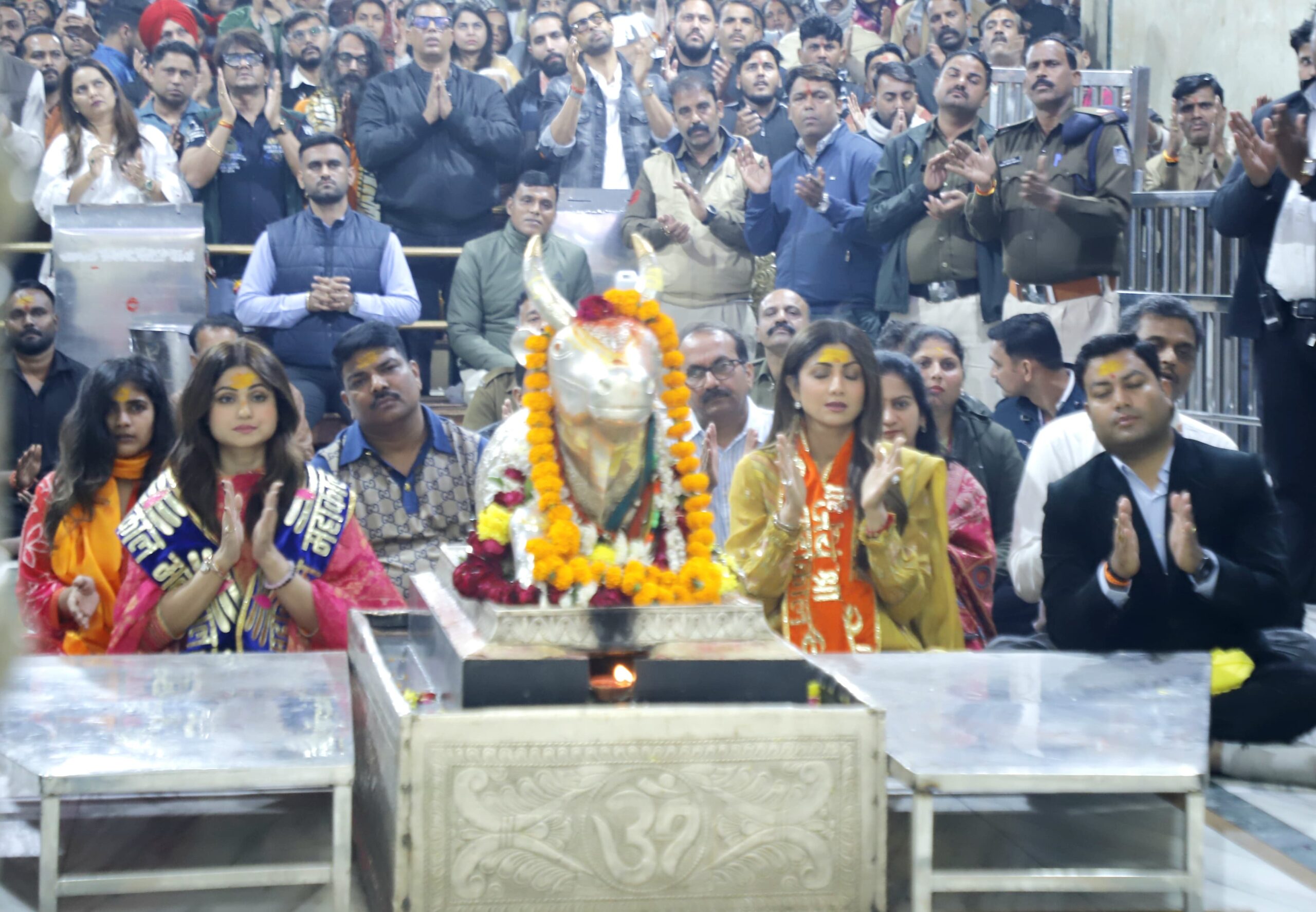 श्री महाकालेश्वर मंदिर प्रबंध समिति की ओर से सहायक प्रशासक श्री हिमांशु कारपेंटर द्वारा शिल्पा शेट्टी एवं शमिता शेट्टी का स्वागत एवं सत्कार किया गया।