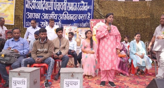 उज्जैन। माझी आदिवासी पंचायती समाज के तत्वाधान में रविवार को अखिल भारतीय परिचय सम्मेलन व माझी महाकुंभ का प्रेम छाया परिसर में आयोजित किया इस कार्यक्रम में प्रदेश भर से समाज जनो ने शामिल होकर कार्यक्रम को सफल बनाया । समाज के प्रदेश अध्यक्ष राकेश वर्मा ने बताया कि मुख्य अतिथि रीवा के महंत श्री मनसुख लाल जी बाबा एव उदासी अखाड़े के महंत त्यागी हरिशरण दास महाराज उपस्थित थे। महंत श्री मनसुख लाल जी बाबा को तलवार देकर सम्मानित किया गया। उन्होंने अपने भाषण में यह कहा है कि मैं माझी समाज के लिए हमेशा हमेशा तत्पर रहूंगा प्रदेश अध्यक्ष राकेश वर्मा के द्वारा अभिनंदन कर धन्यवाद दिया। कार्यक्रम मे 150 जोड़े बने। साथ ही 300 युवक युवतियों की प्रविष्टियां प्राप्त हुई । साथ ही समाज के प्रतिभावान विद्यार्थी वरिष्ठ समाजसेवी एवं दानदाताओं का निषाद अवार्ड तथा युवा युवतियों को ड्रॉ निकालकर सम्मानित किया गया । कार्यक्रम का संचालन खेमचंद रायकवार ने किया। आभार रामचरण रायकवार ने माना।इस अवसर पर , सोमेश रायकवार, गोपाल रायकवार, संजय रायकवार चिंतामणि रायकवार ,विजय रायकवार,राजू रायकवार, मयंक माझी,श्रीमति मीना रायकवार, आरती पारीया, श्रीमति देवमणि, जितेंद्र माझी , राहुल बाथम आदि समाजजन मौजूद थे।
