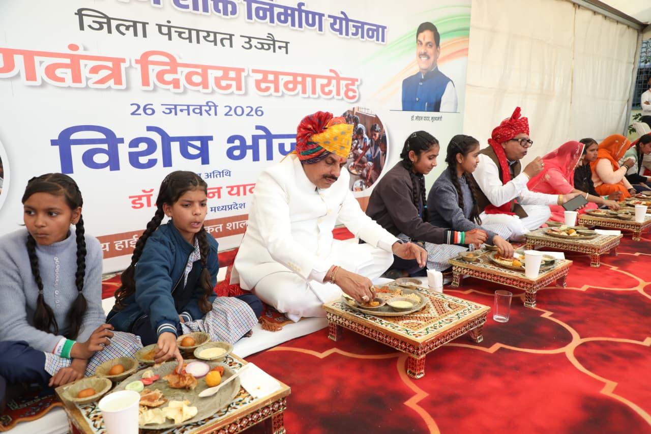 उज्जैन, गणतंत्र दिवस के अवसर पर मुख्यमंत्री डॉ. मोहन यादव प्रधानमंत्री पोषण शक्ति निर्माण योजना के अंतर्गत मोहनपुरा के शासकीय हाई स्कूल (एकीकृत शाला) में आयोजित विशेष भोज में शामिल हुए। मुख्यमंत्री डॉ. यादव ने बच्चों को दुलारकर उन्हें गणतंत्र दिवस की शुभकामनाएं दी।
