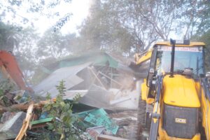 उज्जैन, नगर निगम जोन क्रमांक 2 के अंतर्गत नगर निगम परिसर क्षेत्र में अवैध अतिक्रमण हटाने की कार्यवाही की गई जिसमें नगर निगम परिसर क्षेत्र में स्थित स्विमिंग पूल के पास पंच पीर मजार के समीप के अवैध अतिक्रमण को शनिवार को नगर निगम के अधिकारियों की उपस्थिति एवं पुलिस प्रशासन के सहयोग से 04 जेसीबी सहित डंपर अन्य संसाधन द्वारा अतिक्रमण हटाया गया*