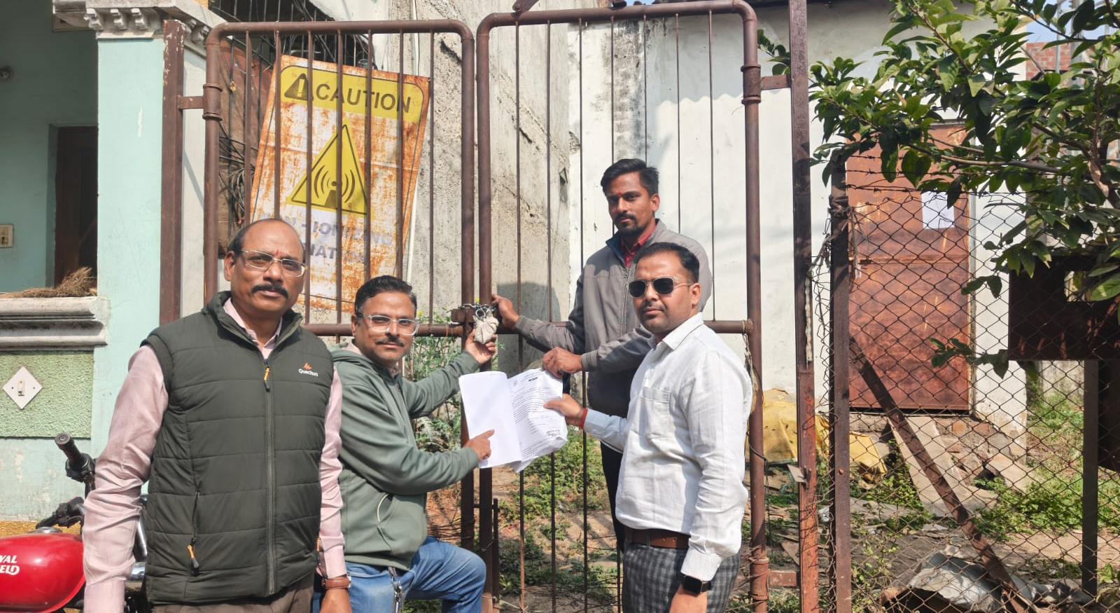 उज्जैन, नगर निगम संपत्ति कर विभाग अमले द्वारा करदाताओं से बकाया संपत्ति कर की राशि जमा करवाने एवं ऐसे बड़े बकायदारों जिनका 50 हजार से अधिक बकाया है जिन्हें बार-बार सूचना पत्र जारी करने के बाद भी संबंधित द्वारा बकाया संपत्ति कर की राशि जमा नहीं की जा रही है जिन पर कुर्की एवं तालाबंदी की कार्यवाही निगम आयुक्त श्री अभिलाष अभिलाष मिश्रा के निर्देश अनुसार की जा रही है इसी क्रम में गुरुवार को जोन क्रमांक 01 की टीम द्वारा वार्ड क्रमांक 01 के बकायदार मोहम्मद फारूक पिता मोहम्मद अयूब भवन क्रमांक 40 सिद्धवट मार्ग पर 82,997/- की राशि बकाया होने से कुर्की एवं तालाबंदी की कार्यवाही की गई*