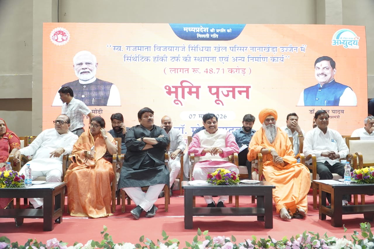 उज्जैन, मुख्यमंत्री डॉ.मोहन यादव के मुख्य आतिथ्य में शनिवार को स्व. राजमाता विजयाराजे सिंधिया खेल परिसर नानाखेडा स्टेडियम परिसर में 48.71 करोड रुपए की लागत से बनने वाले अंतर्राष्ट्रीय स्तर के सिन्थेटिक हॉकी टर्फ और पवेलियन दर्शक दीर्घा के निर्माण कार्य का भूमि पूजन किया गया।