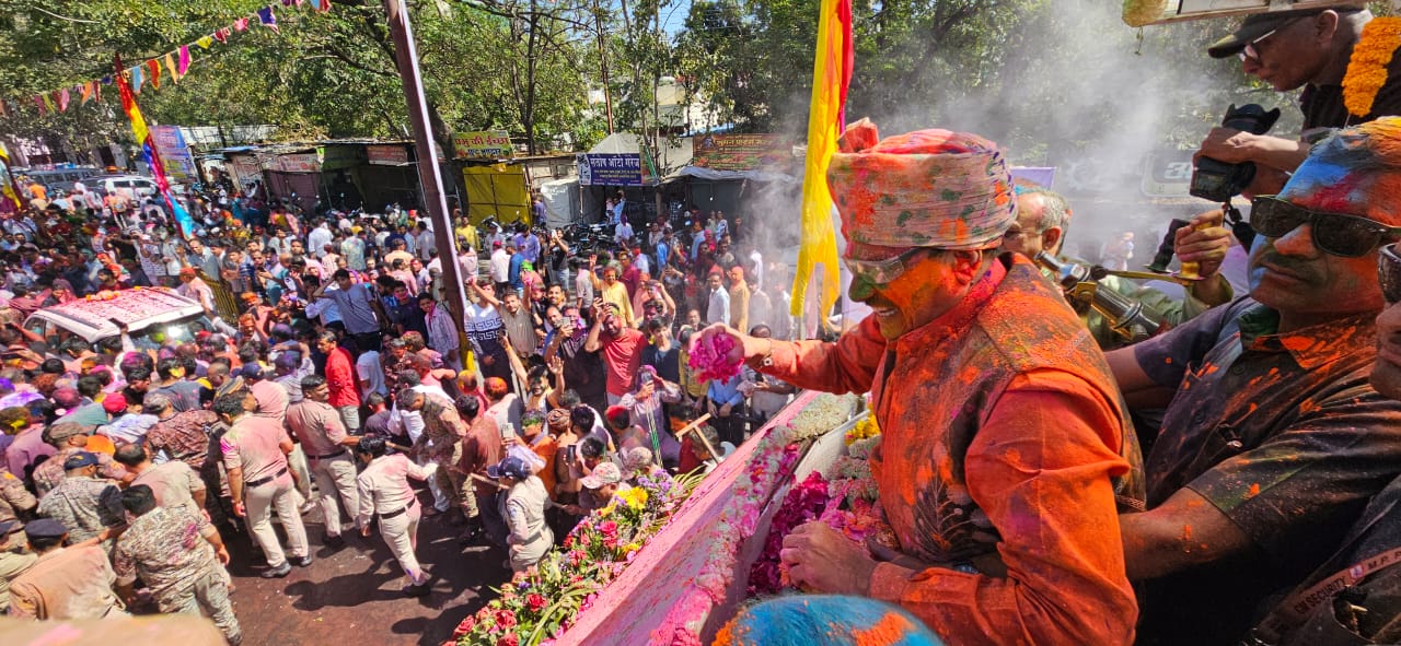 टावर चौक पर एक मंच बनाया गया था। मुख्यमंत्री डॉ यादव ने सभी पर गुलाब के फूल बरसाकर होली खेली।