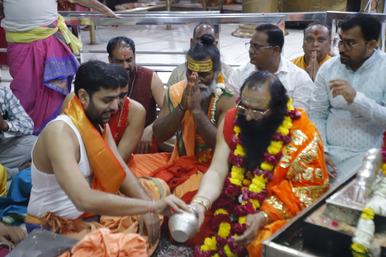 श्री महाकालेश्वर मंदिर प्रबंध समिति की ओर से सहायक प्रशासक श्री आशीष डालवाडिया द्वारा महाराज श्री का स्वागत एवं सत्कार किया गया!