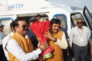 उज्जैन, मुख्यमंत्री डॉ मोहन यादव का गुड़ी पड़वा चैत्र प्रतिपदा के पावन पर्व पर उज्जैन आगमन हुआ। मुख्यमंत्री डॉ यादव का उज्जैन हेलीपैड आगमन पर प्रभारी मंत्री श्री गौतम टेटवाल,विधायक श्री अनिल जैन कालूहेड़ा, जिला पंचायत अध्यक्ष श्रीमती कमला कुंवर देवड़ा, महापौर श्री मुकेश टटवाल,नगर निगम सभापति श्रीमती कलावती यादव,श्री संजय अग्रवाल,श्री रवि सोलंकी ने शाल ओढ़ाकर और पुष्पगुच्छ भेंट कर आत्मीय स्वागत किया। इस अवसर पर स्थानीय पार्षद,समाजसेवी उपस्थित रहे।